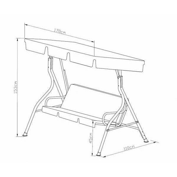 Das Gestell ist aus stabilem Stahlrohr gefertigt (Hauptrohre = 38mm Durchmesser). Die Sitzbespannung besteht aus einem wetterfesten Kunststoffgewebe. Die abnehmbare Auflage hat eine Dicke von 60mm. Materialzusammensetzung Bezüge und Dachplane: 100% Polyester.