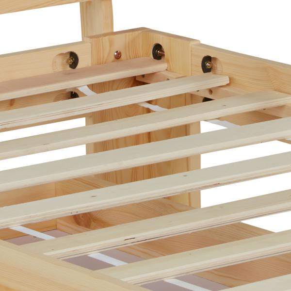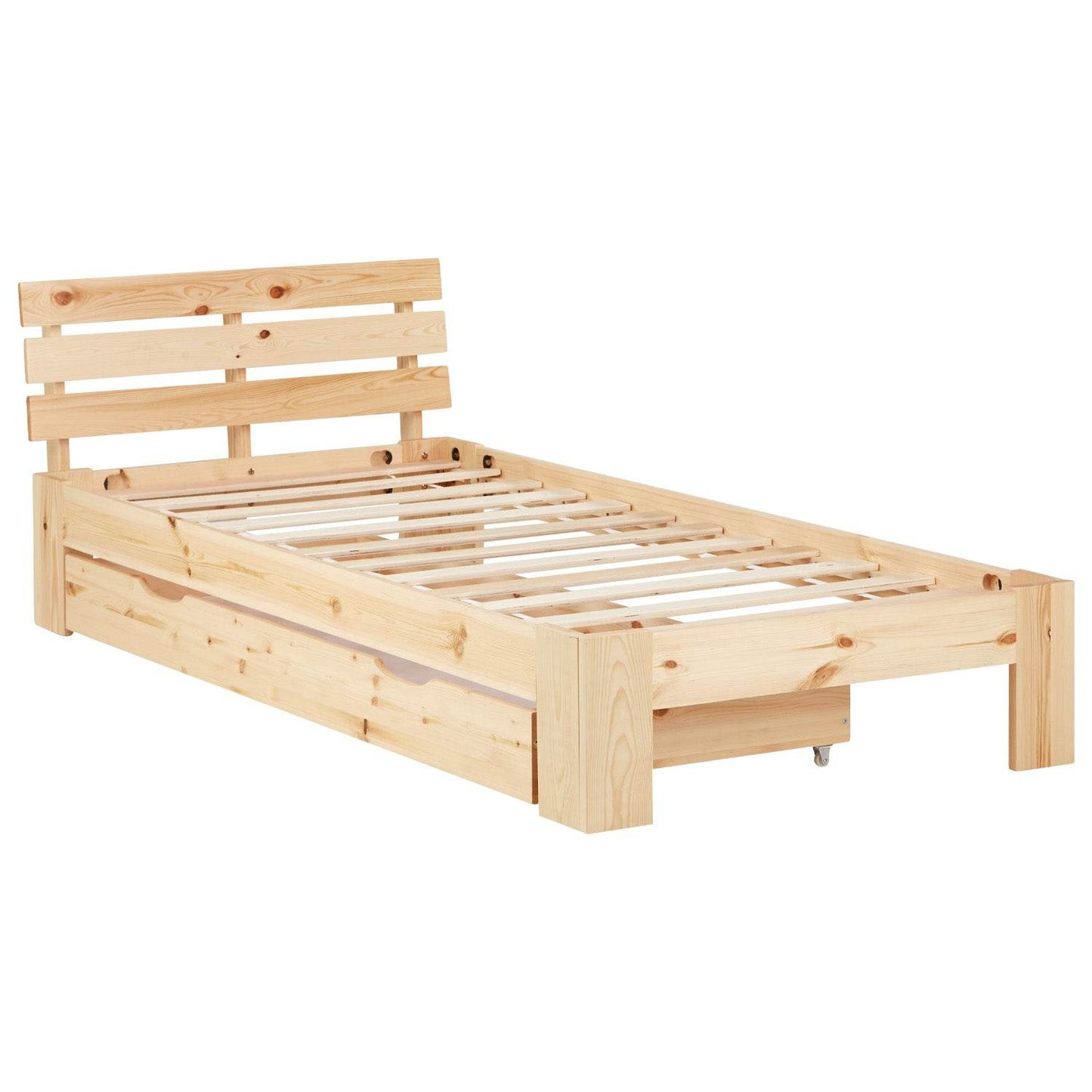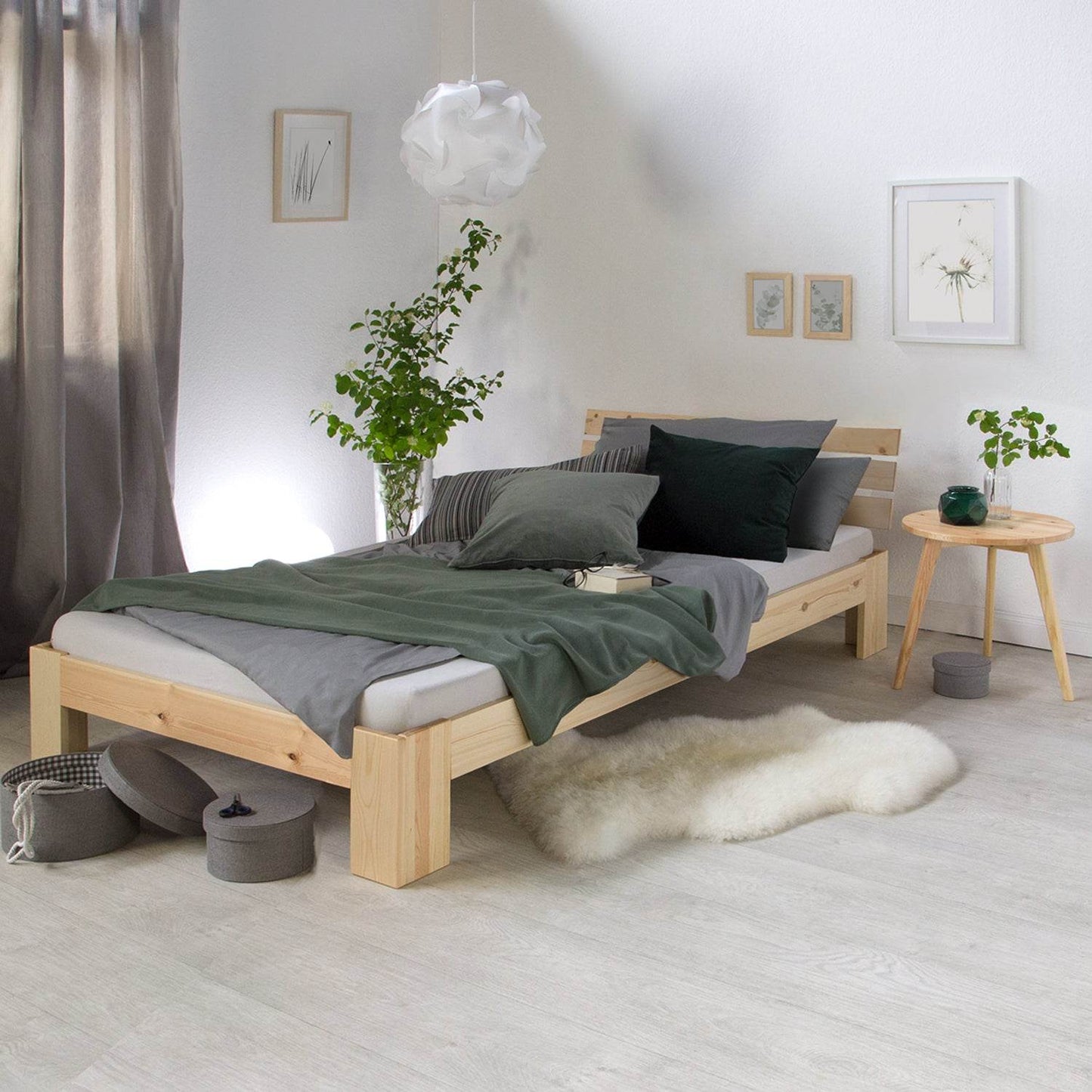 Unser komfortables Holzbett 90x200 cm begeistert vor allem durch seine natürliche Schönheit, dem zeitlosen Design und der stabilen Verarbeitung. Ob im Schlafzimmer, Jugendzimmer oder Gästezimmer - das Bett lässt sich aufgrund seines dezenten Designs perfekt in jeden Schlafraum integrieren. Der Bettrahmen samt Kopfteil ist aus massiver Kiefer und klar lackiert. Passend zum Bettgestell gibt es ein Rolllattenrost kostenfrei dazu.