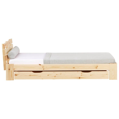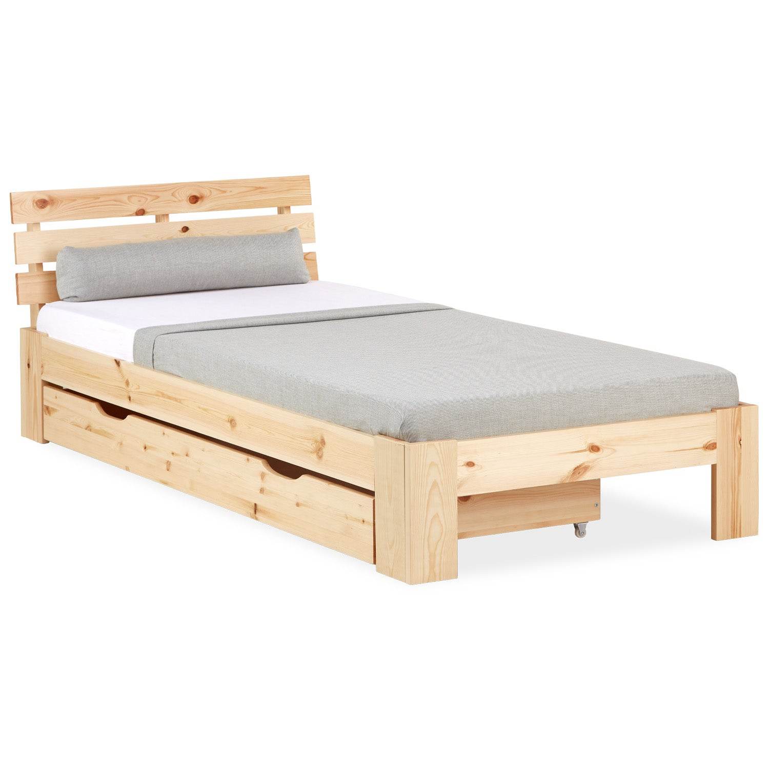 Holzbett mit Bettkasten 90x200 Futonbett Natur Kiefer Massivholz
