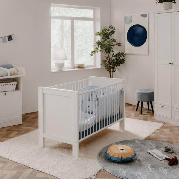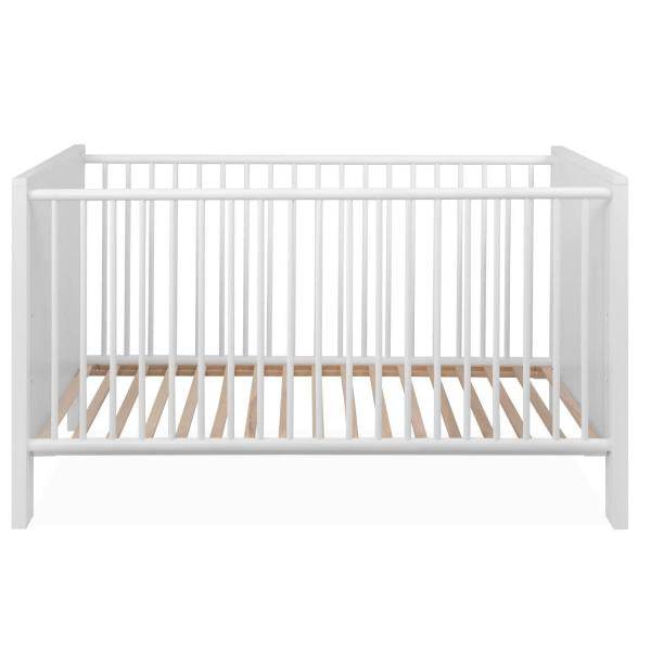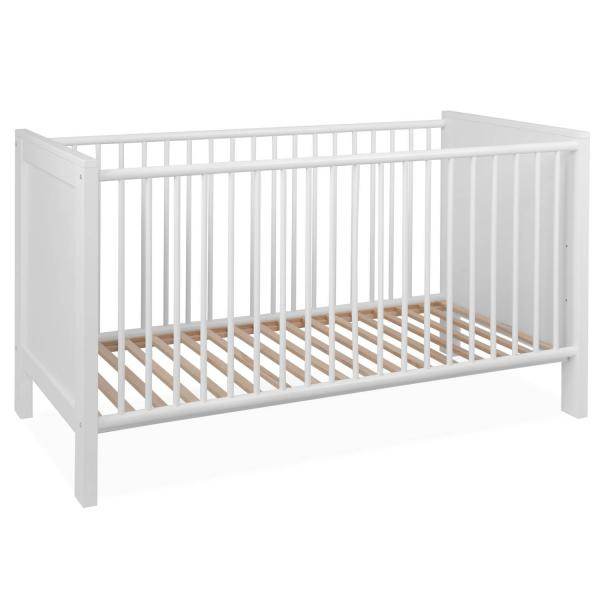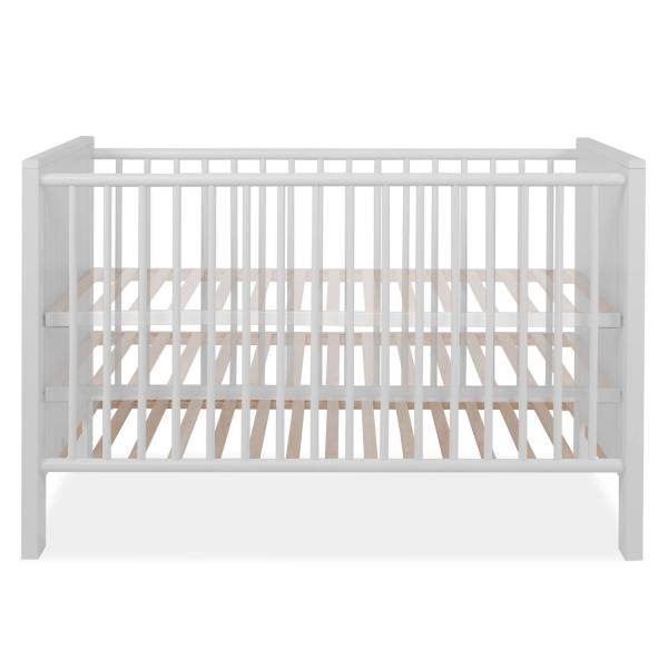 Babybett Kinderbett 140x70 cm Umbaubar Gitterbett Höhenverstellbar Holz Weiß Schutzgitter