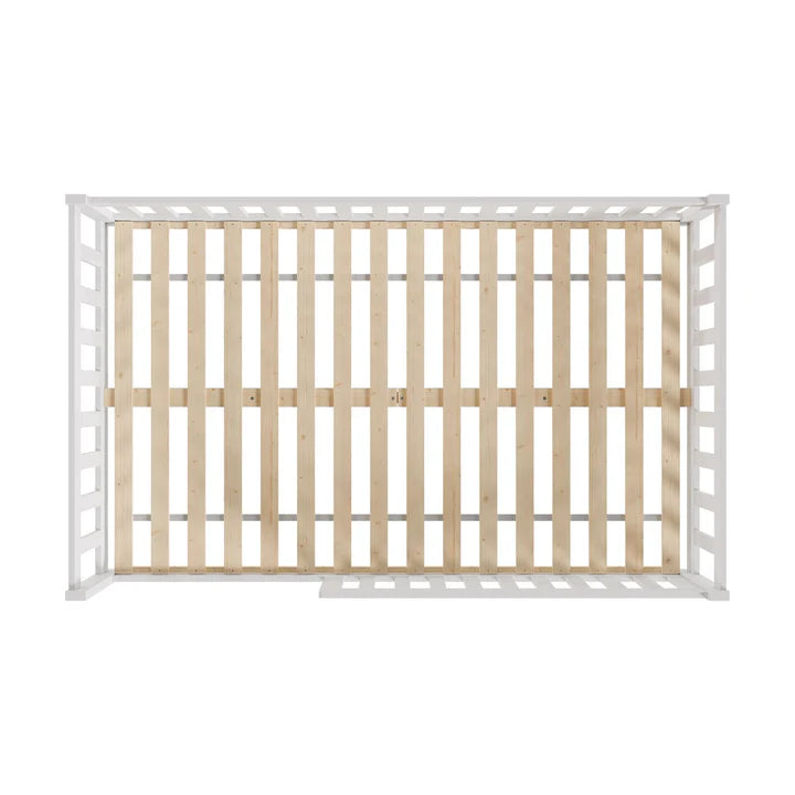 Der Lattenrost verfügt über Sprossen aus Holz und kann bis zu 125 kg tragen. So kann sich Mama oder Papa zur Gute-Nacht-Geschichte einfach mit ins Bett kuscheln.