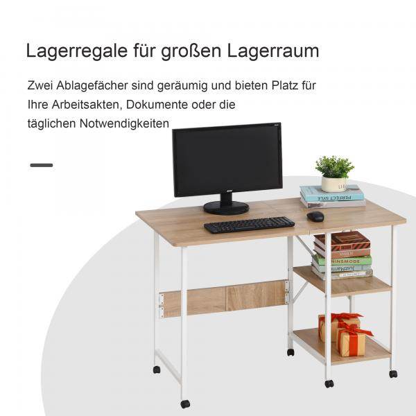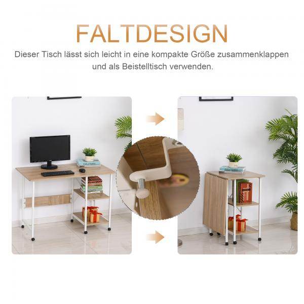 Klapptisch Tisch Schreibtisch Bürotisch mit Rollen Computertisch Mobil MDF Natur