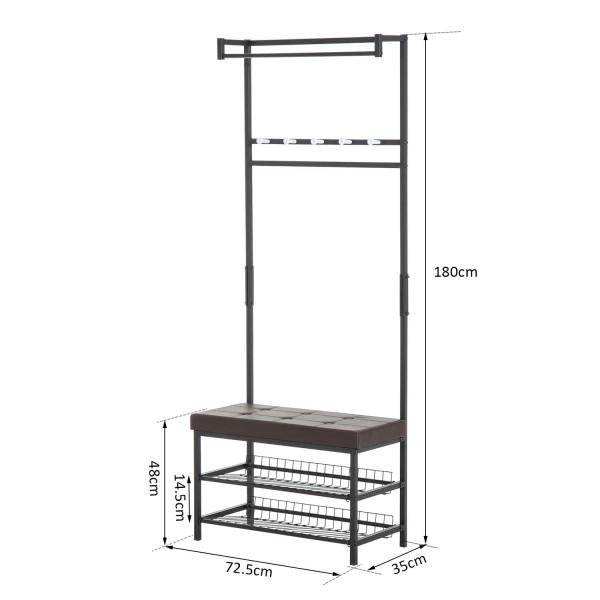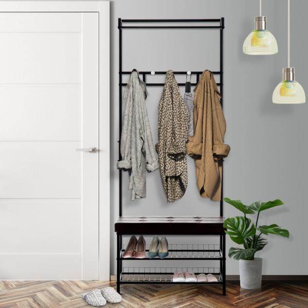 - Praktische Oberseite mit 5 Haken zum Aufhängen von Jacken, Taschen, Schals usw. und 2 Ablagen - Bequemes Sitzen und unter dem Sitz für ordentliche Schuhaufbewahrung