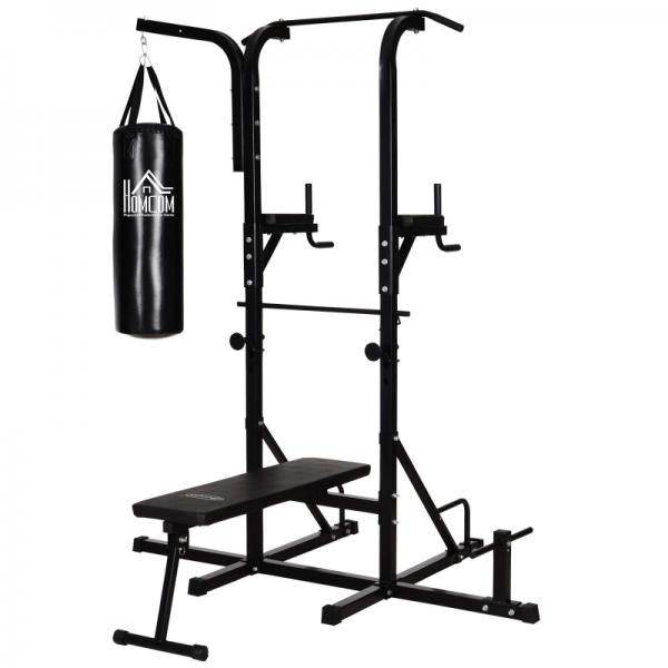 Bringen Sie das Fitnessstudio nach Hause mit dieser Allround Trainingsstation. Der integrierte Boxsack lädt zum Boxtraining ein, die Bank ist ideal für Push-Ups und Sit-Ups und auch weiteres Kraft und Ausdauertraining ist kein Problem. Mit der Vielzahl an Trainingsmöglichkeiten trainieren Sie Ihren ganzen Körper.