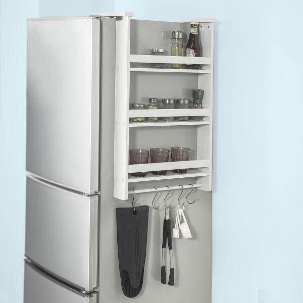 Küchenregal Weiss | Gewürzregal mit 3 Ablagen | Hängeregal für Kühlschrank