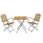 Bestehend aus 2x Klappsessel mit Armlehnen und 1x Klapptisch 70x70cm quadratisch.