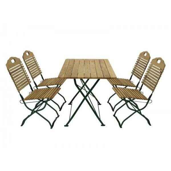 Kurgarten - Garnitur BAD TÖLZ 5-teilig, Flachstahl grün + Robinie, klappbar