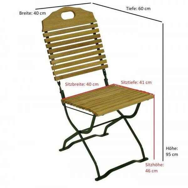 Die Ausführung entspricht dem klassischen Kurgarten- bzw. Biergartendesign mit elegantem Metallgestell. Alle Hölzer sind sauber verarbeitet. Die Gestelle sind aus massivem Flach- und Rundstahl gefertigt und im klassischen moosgrün (RAL 6005) pulverbeschichtet.