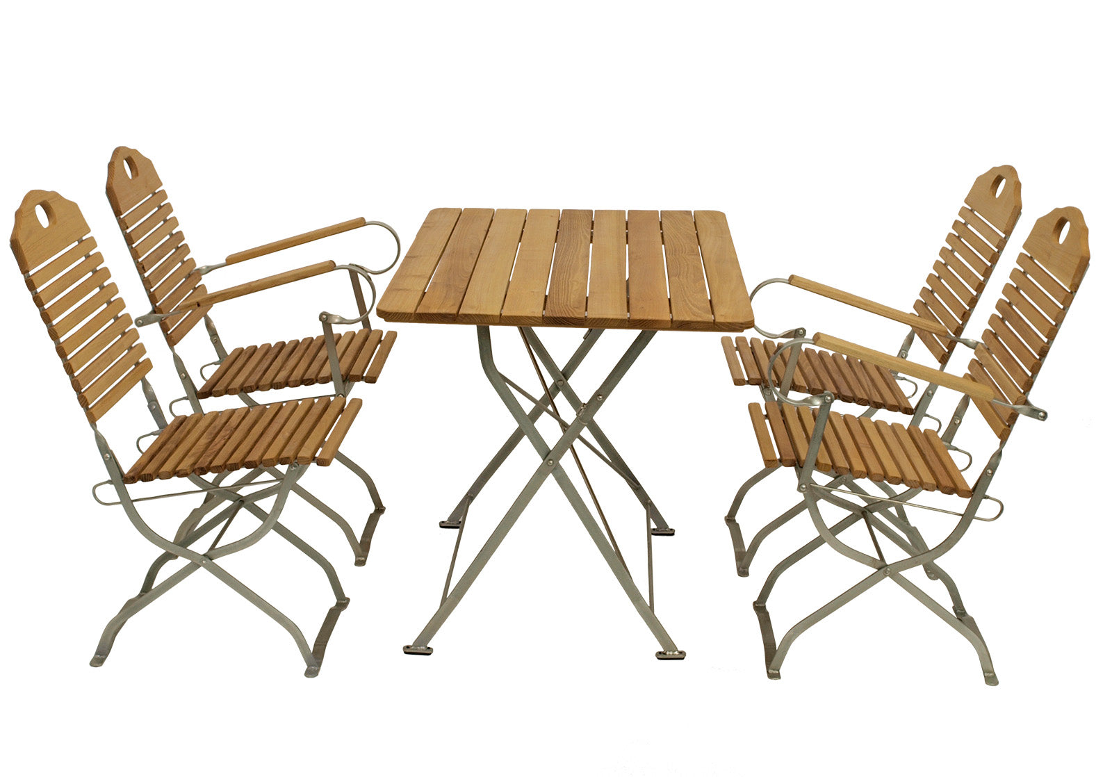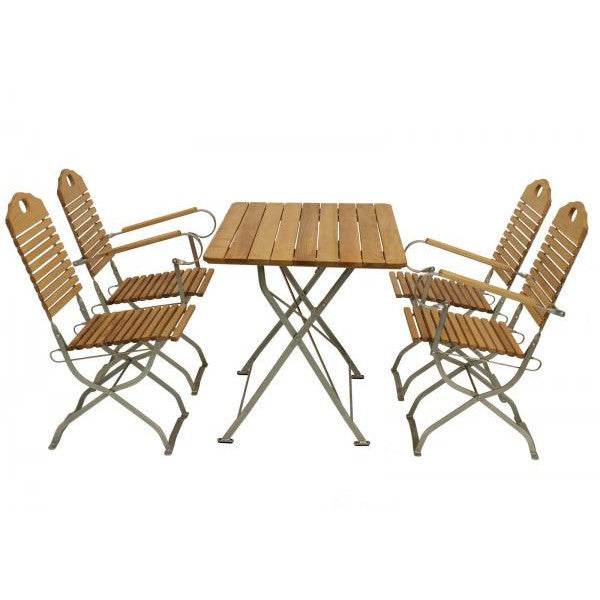 Kurgarten - Garnitur Sitzgruppe BAD TÖLZ 5-teilig, Flachstahl verzinkt + Robinie, klappbar