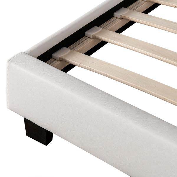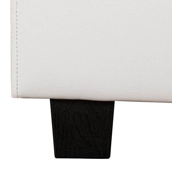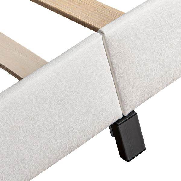 Der Bettrahmen ist aus langlebigem MDF-Holz gefertigt und weich gepolstert. Er überzeugt durch eine solide Verarbeitung und eine leichte Montage. Der pflegeleichte Bezug aus Kunstleder ist sehr gemütlich und lädt zum Verweilen ein. Er lässt sich kinderleicht mit einem feuchten Tuch reinigen.