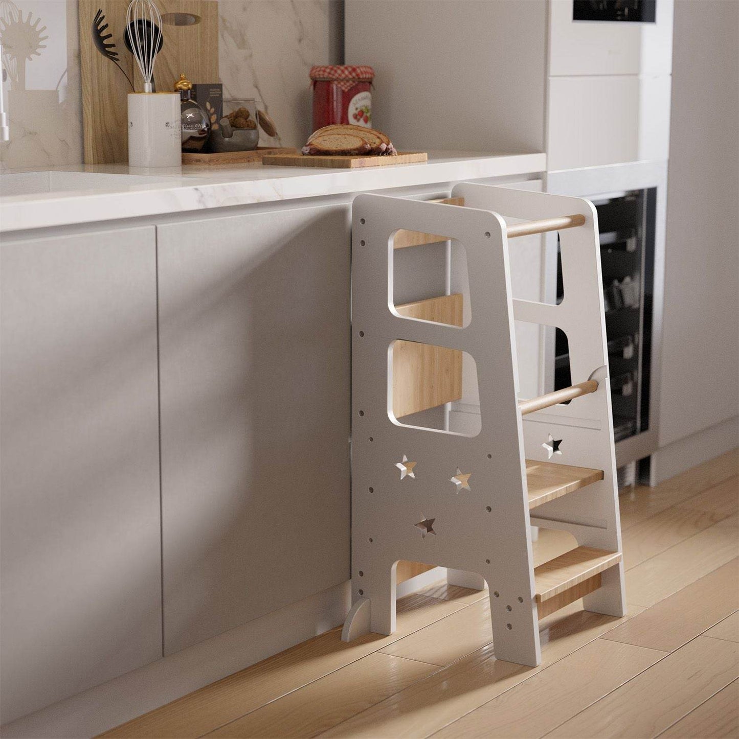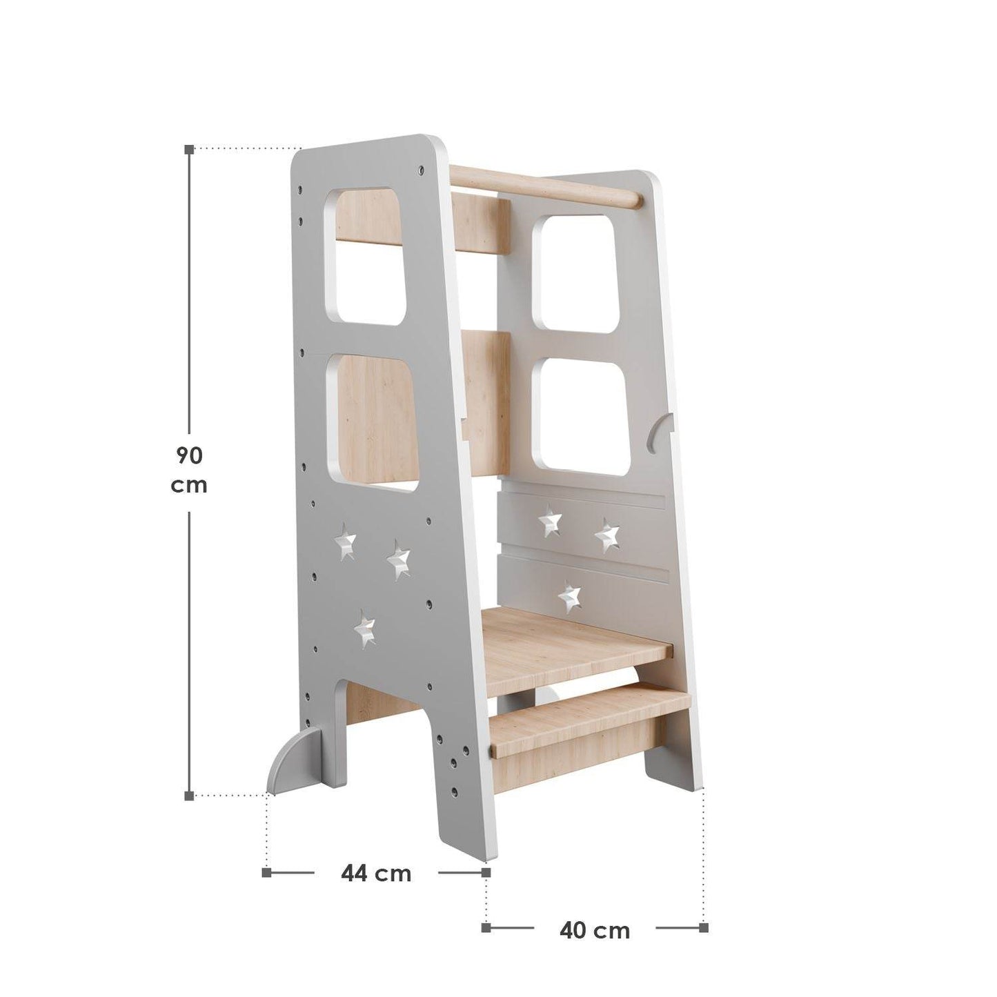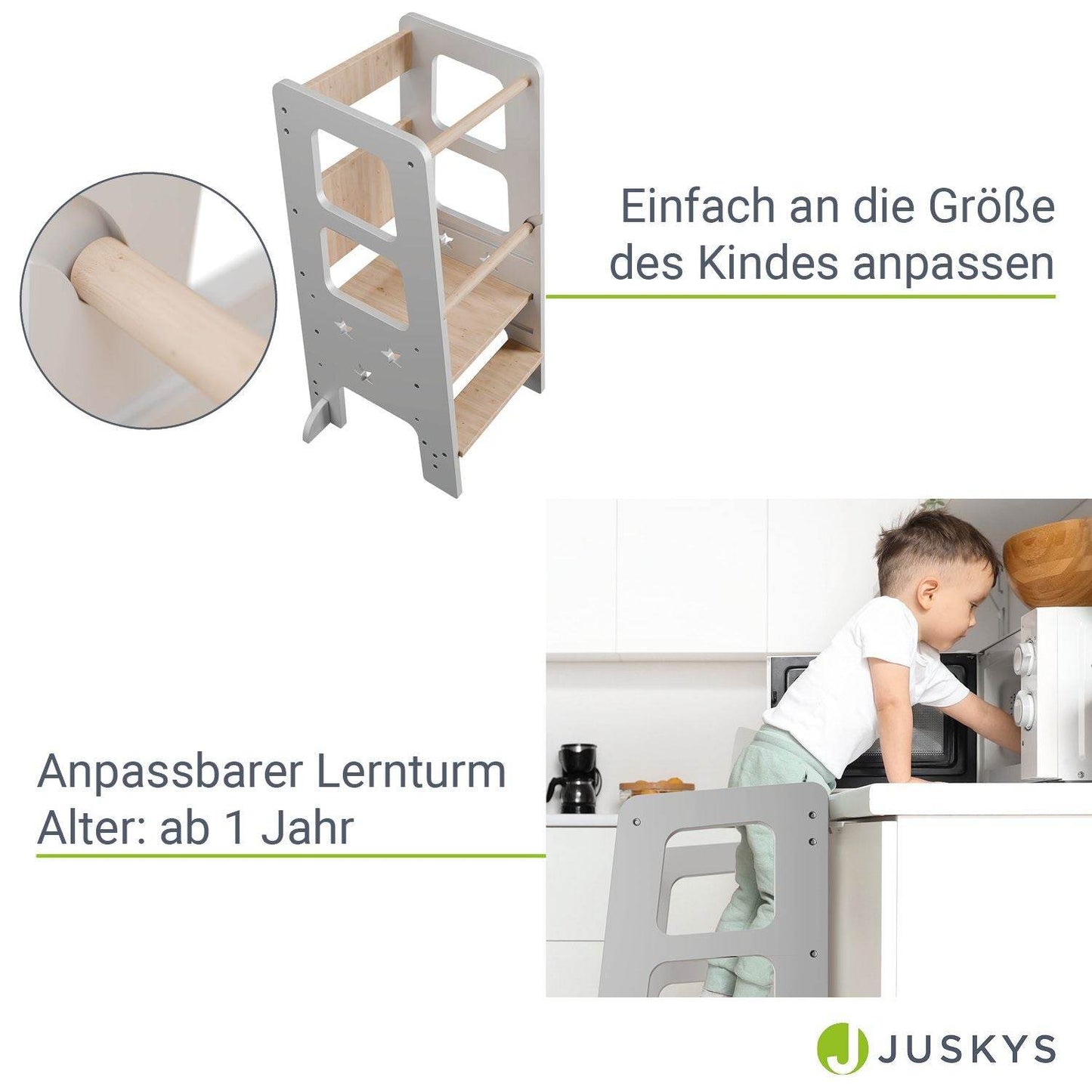 Der höhenverstellbare Lernturm wächst mit Ihrem Kind mit und passt sich jeder Wachstumsphase an, wodurch jahrelanger Gebrauch sichergestellt ist.