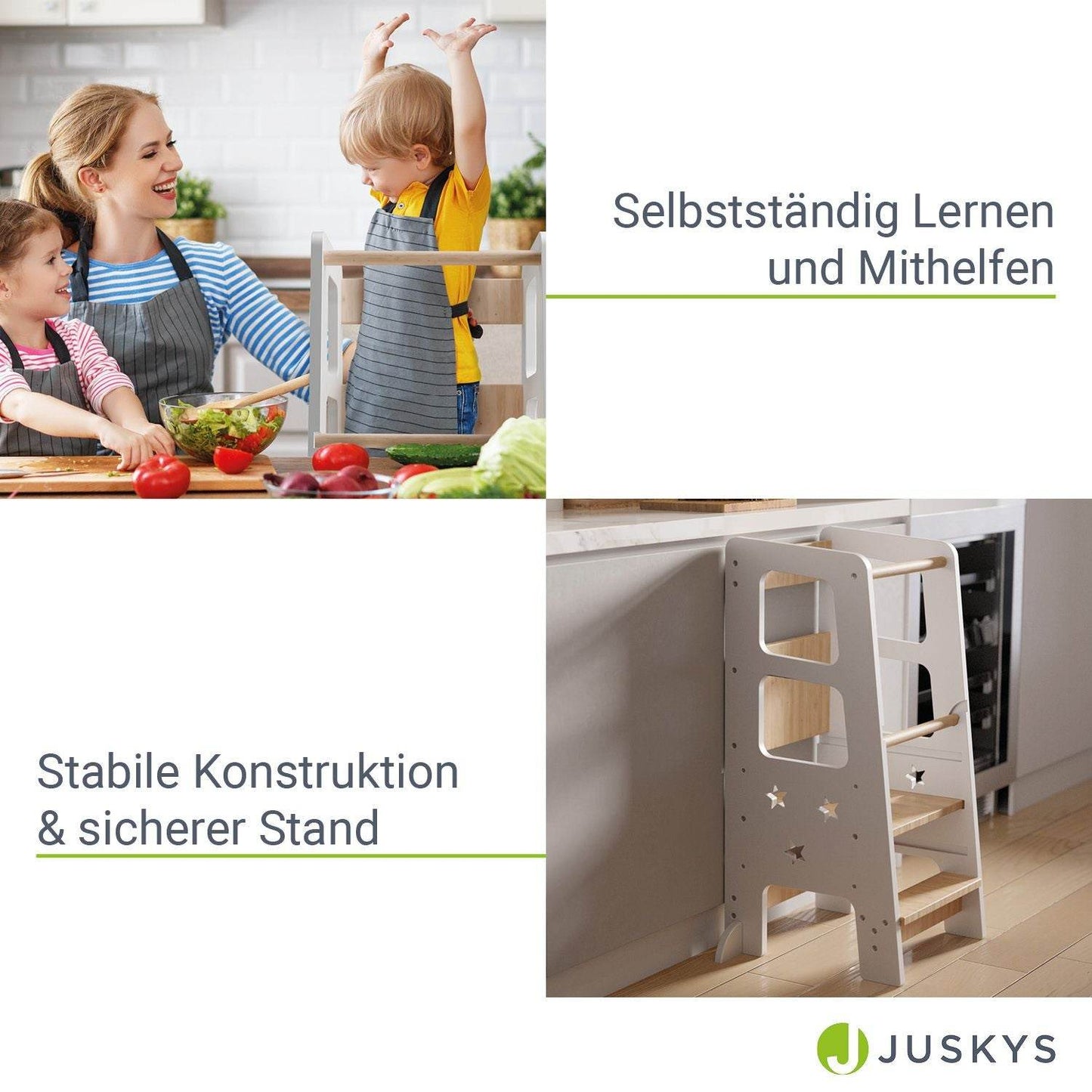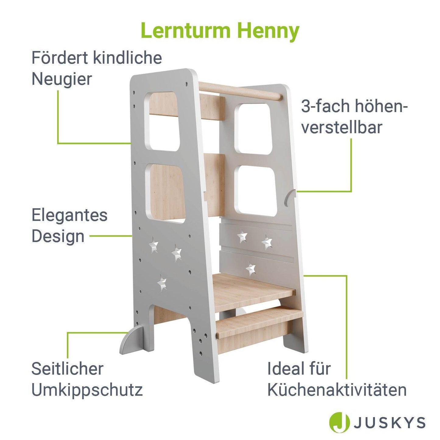 Der Lernturm Henny in elegantem Weiß ist der ideale Küchenhelfer für Kinder ab 1 Jahr. Diese höhenverstellbare Stehhilfe ermöglicht es den Kleinen, auf sicherer Augenhöhe mit Ihnen zu kochen und zu backen. Dank des robusten Umkippschutzes ist größtmögliche Sicherheit gegeben. Der Lernturm lässt sich mühelos an die Größe Ihres Kindes anpassen und wächst somit mit. Fördern Sie die Neugier und das Mitmachen Ihres Kindes im Haushalt auf spielerische Weise. Ein Muss für jede moderne Küche!