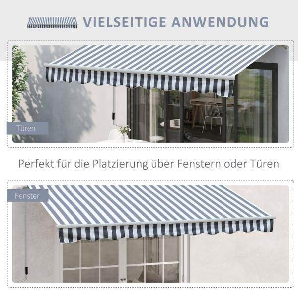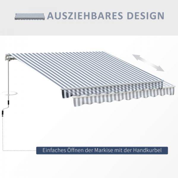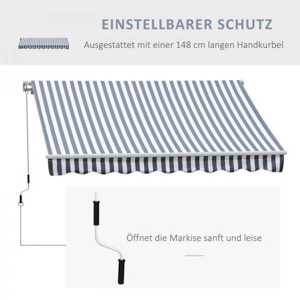 Markise Gelenkarmmarkise Sonnenschutz Handkurbel Balkon Alu Grau Weiss 2,95 x 2,45 m