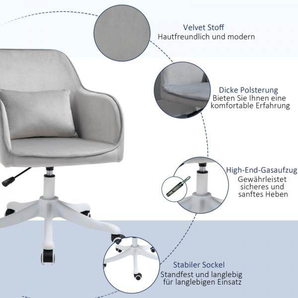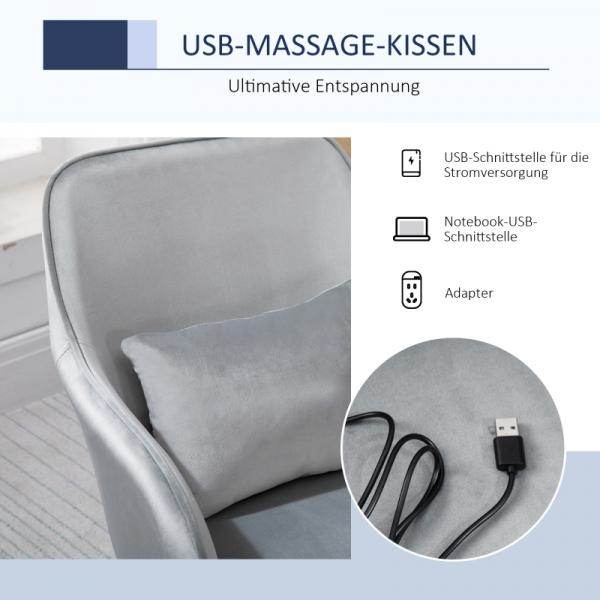 Der zeitgemäße Massage-Bürostuhl von Vinsetto bietet nicht nur ein ansprechendes Design, sondern ist auch mit einer praktischen Massagefunktion ausgestattet. Das integrierte Lendenkissen verfügt über eine Vibrationsfunktion, die Ihren Rücken nach langen Arbeitssitzungen oder während kurzer Pausen verwöhnt. Der Bezug aus weichem und atmungsaktivem Vlies sorgt für zusätzlichen Komfort. Dieser elegante Massagebürostuhl von Vinsetto ist in den angesagten Farben Grau, Türkis und Rosa erhältlich.
