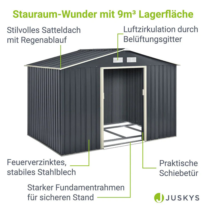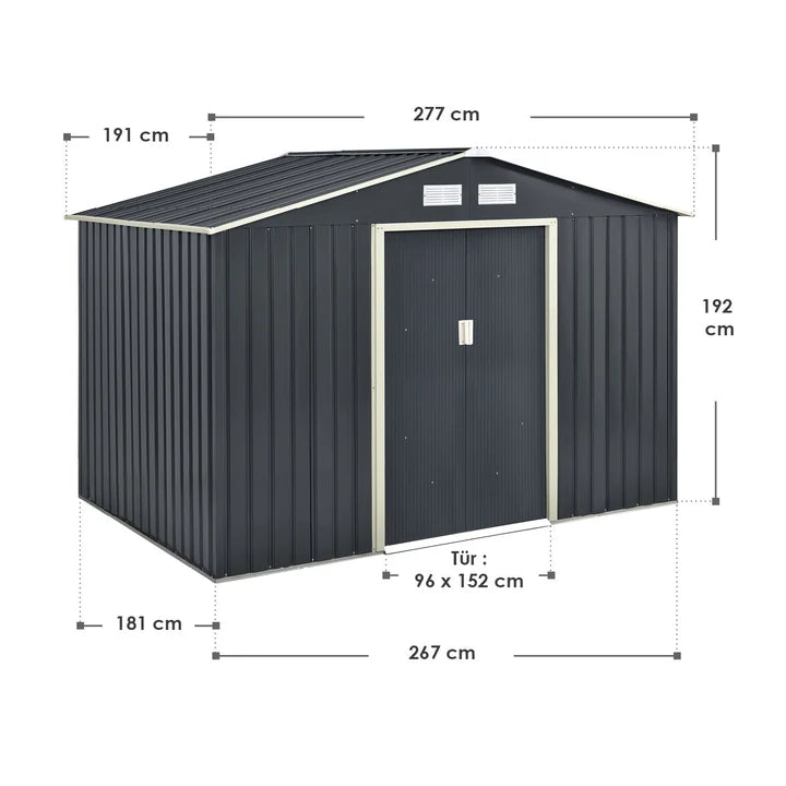 - 1 × Metall Geräteschuppen mit Satteldach