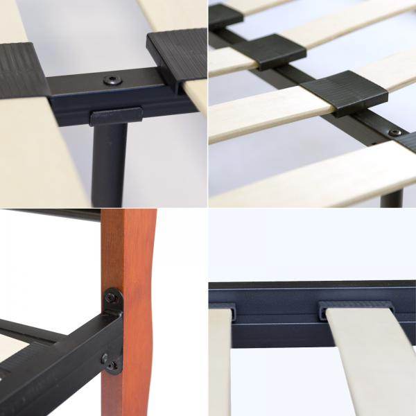 Der Rahmen ist mit einer hochwertigen Pulverbeschichtung versehen. Verlässliche Stabilität wird durch die massiven Bettfüße und das Lattenrost erreicht. Das stabile Lattenrost ist bei diesem Doppelbett inklusive. Das Bett wird mit detaillierter Aufbauanleitung geliefert und ist leicht zu montieren.