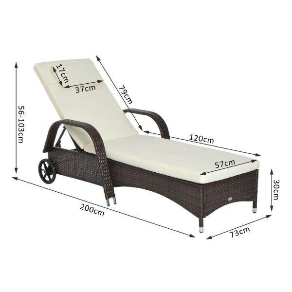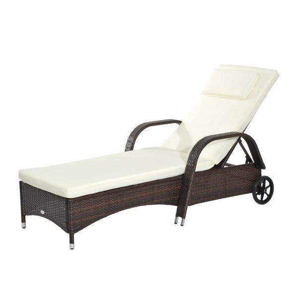 Diese geschmackvolle mobile Gartenliege aus Polyrattan zeichnet sich sowohl durch das innovative Design als auch die erstklassige Verarbeitung aus. Diese Liege ist aus robustem Metall mit witterungsbeständigem Polyrattan gefertigt und eignet sich bestens für den Außenbereich. Die neigungsverstellbare Rückenlehne sowie das weich, gepolsterte Kissen gewährleisten dabei ein ideales Liegevergnügen. Dank der zwei Rollen ist diese mobile Gartenliege einfach zu bewegen, sodass Sie überall darauf entspannen und die Sonne in vollen Zügen genießen können!