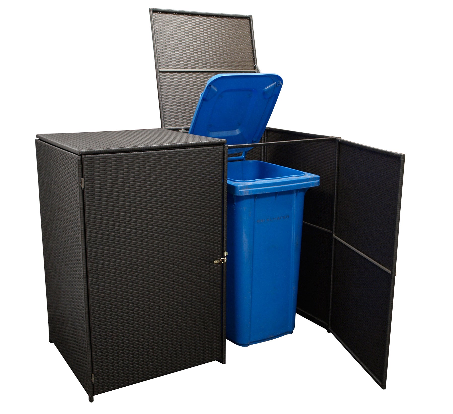 Mülltonnenbox 78x150x123cm für 2 Tonnen bis 240 Liter, Stahl + Polyrattan mocca