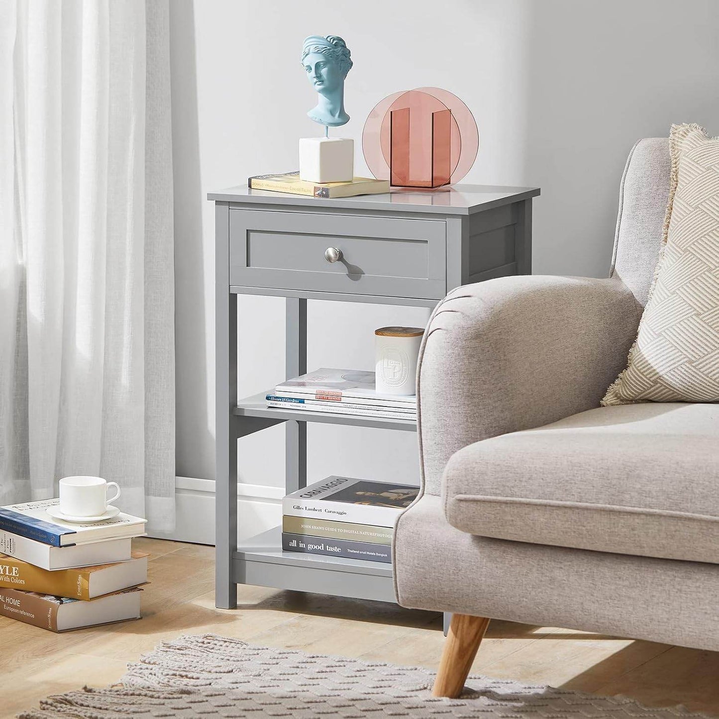 - Design Nachttisch Beistelltisch mit einer Schublade und 2 Ablagen