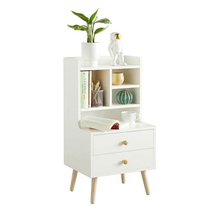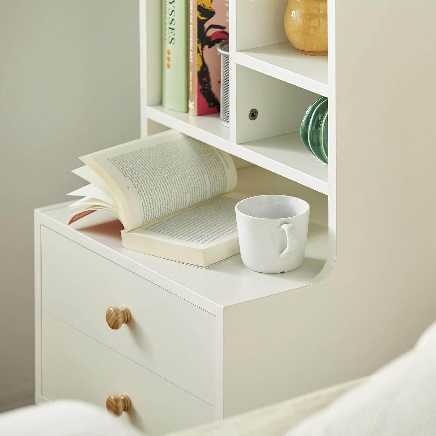 - Der Nachttisch verfügt über 4 offene Fächer, 1 Ablage und 2 ausziehbare Schubladen mit Griffen, wobei Komfort und Privatsphäre berücksichtigt werden.