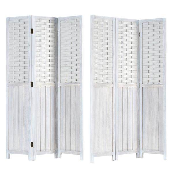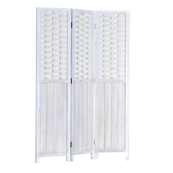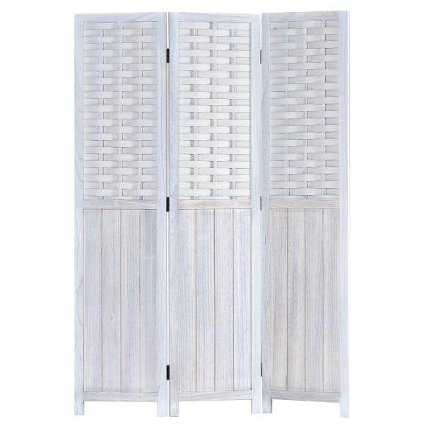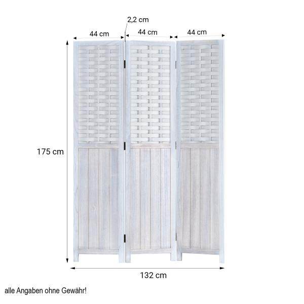 Paravent Raumteiler 3 teilig Holz Trennwand Rattan Sichtschutz Weiss