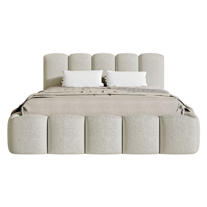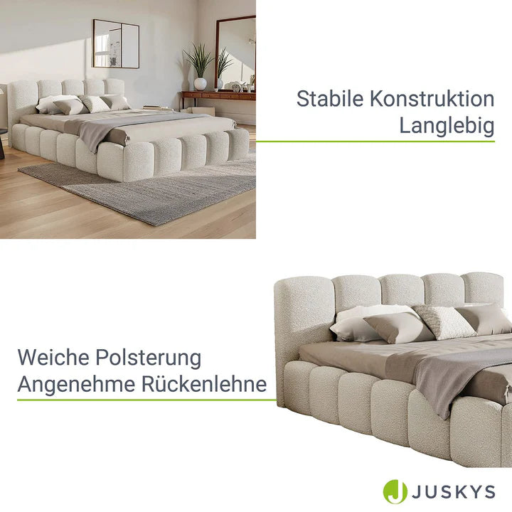 Der hochwertige Bouclé-Stoff verleiht dem Bett eine elegante Struktur und sorgt für eine angenehm weiche Haptik mit modernem Look.
