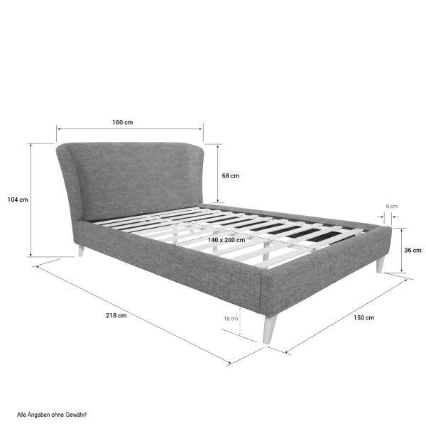 Polsterbett Doppelbett Stoffbett Bettgestell 140 x 200 Bett Grau
