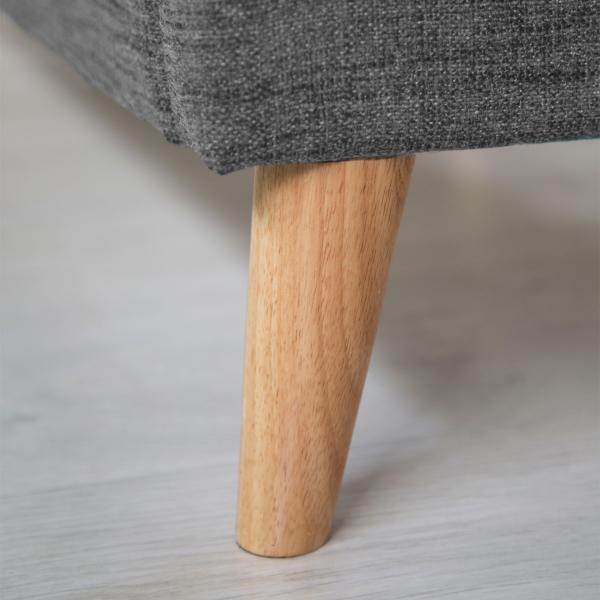 Die nach unten verjüngten Holzfüsse runden das Erscheinungsbild harmonisch ab und verschaffen dem Ganzen eine natürliche sowie wohnliche Note. Verlässliche Stabilität wird zudem durch die Mittelstrebe mit Stützfüße und dem Bettrahmen aus Holz mit Lattenrollrost erreicht.