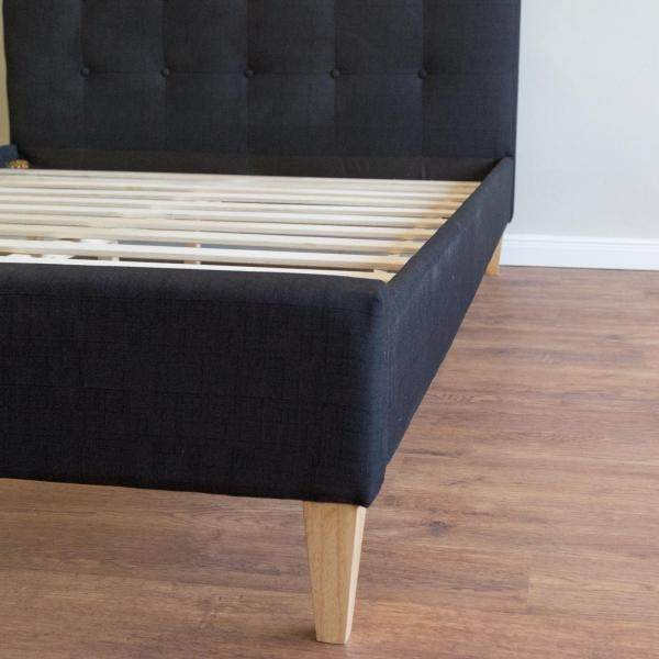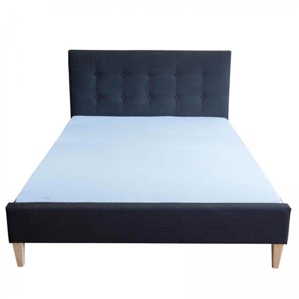Das klassische Design des Polsterbettes ist ein zeitlos schöner Anblick. Erleben Sie wohltuende Ruhestunden und erholsame Nächte in diesem Designerbett. Die romantische Gestaltung des Bettes mitsamt der liebevollen Details erschafft eine idyllische und verträumte Atmosphäre in Ihrem Schlafbereich. Der schwarze Stoff ist mit einer hochwertigen Webstruktur versehen. Verlässliche Stabilität wird durch die massiven Bettfüße und das Lattenrollrost erreicht. Das Bett wird mit detaillierter Aufbauanleitung geliefert und ist leicht zu montieren. Die Matratzen sind nicht inbegriffen.