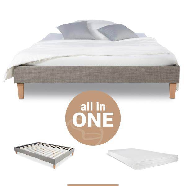 Polsterbett mit Matratze 140x200 Lattenrost Bett Grau