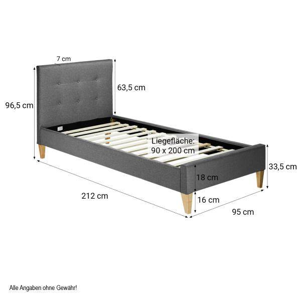Polsterbett mit Matratze 90x200 Lattenrost Doppelbett Bett Grau
