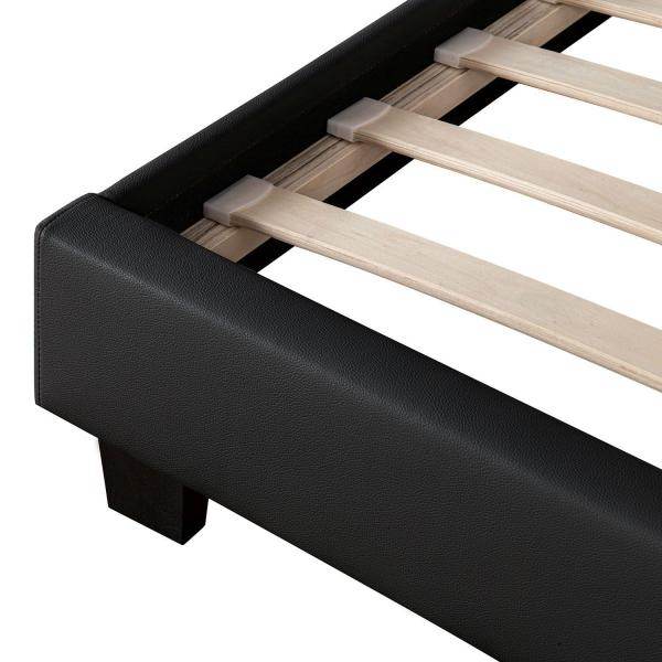 Der Bettrahmen ist aus langlebigem MDF-Holz gefertigt und weich gepolstert. Er überzeugt durch eine solide Verarbeitung und eine leichte Montage. Der pflegeleichte Bezug aus Kunstleder ist sehr gemütlich und lädt zum Verweilen ein. Er lässt sich kinderleicht mit einem feuchten Tuch reinigen.