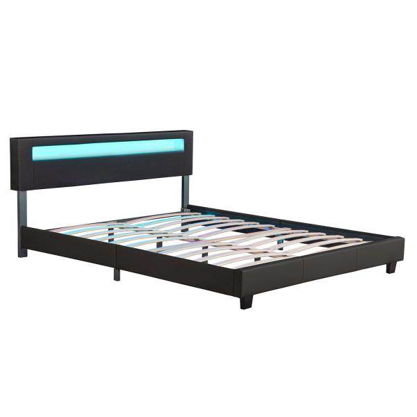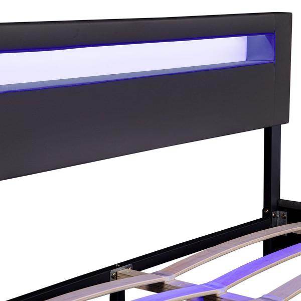 Polsterbett Paris 180 x 200 cm - LED-Beleuchtung und Lattenrost schwarz