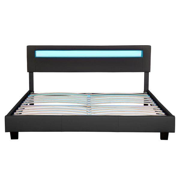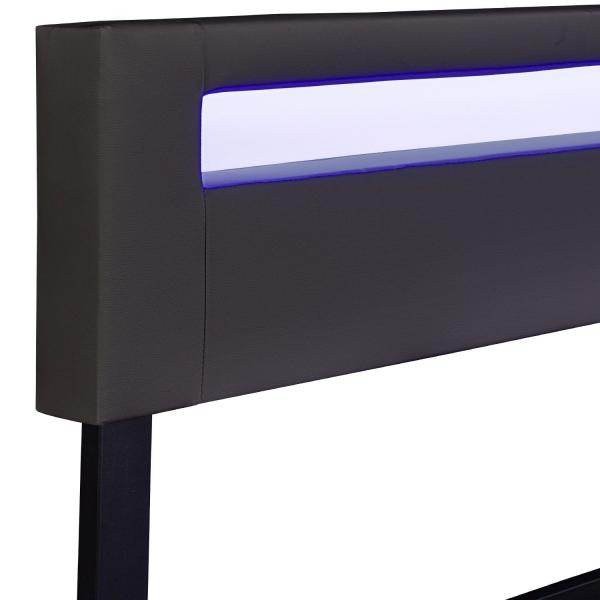 Den Eyecatcher des Kunstlederbettes bildet das höhenverstellbare Kopfteil mit eingebauter LED-Beleuchtung. Mit einer Fernbedienung wählen Sie zwischen 16 verschiedenen Lichtfarben und Helligkeiten aus. Entspannen Sie bei stimmungsvollem Ambiente und indirekter Beleuchtung, während Sie sich an das bequeme Kopfteil lehnen.