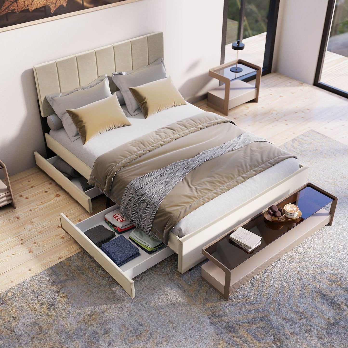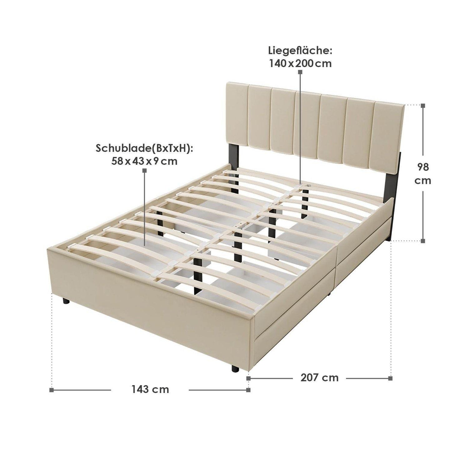 Polsterbett Soria mit Schubladen 140 x 200 Beige