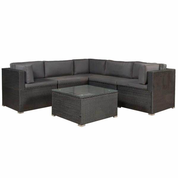 Polyrattan Lounge Sitzgruppe Nassau mit Bezügen in Dunkelgrau
