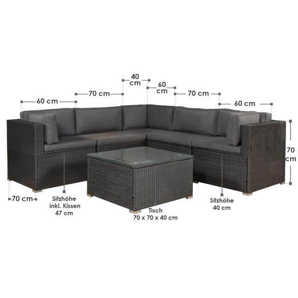 Ihre neue Polyrattan Lounge überzeugt jedoch nicht nur optisch. Die Gartenlounge wird auch in puncto Sitzkomfort hohen Ansprüchen gerecht. Die elastischen wie straffen Polyrattan Fasern passen sich gut an Ihren Körper an und sind selbst ohne Sitz- und Rückenpolster total bequem. Kuschelig weiche Sitz- und Rückenpolster mit dunkelgrauen Bezügen machen die Zeit zu einem total gemütlichen Erlebnis. Dicke Rückenlehnen angenehme Sitzhöhe von 47 cm sorgen für zusätzlichen Komfort. Sie und Ihre Gäste werden begeistert sein!