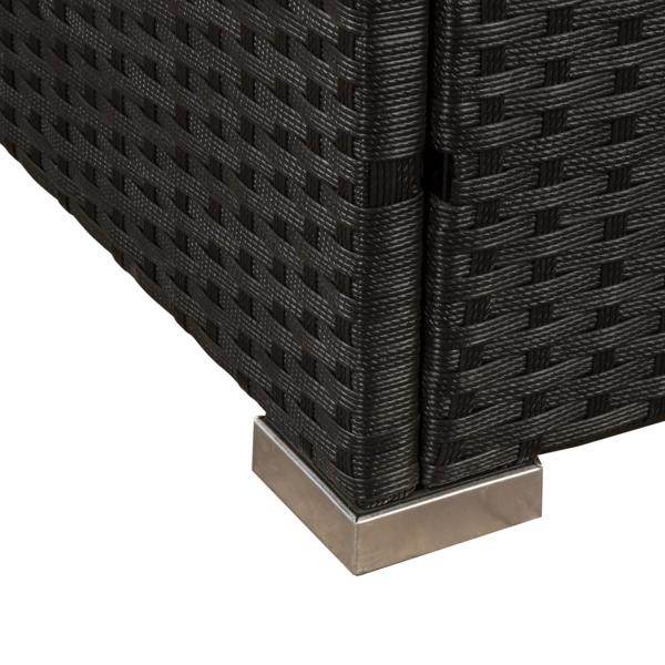 Eine mehrfach verstrebte Stahlkonstruktion in Käfigbauweise dient als stabiles Korsett für das Polyrattan Geflecht. Der sorgfältig verarbeitete Stahl ist pulverbeschichtet und verleiht den Loungemöbeln eine hohe Standfestigkeit. Die Pulverbeschichtung schützt das Gestell vor Kratzer, Stöße und Korrosion.