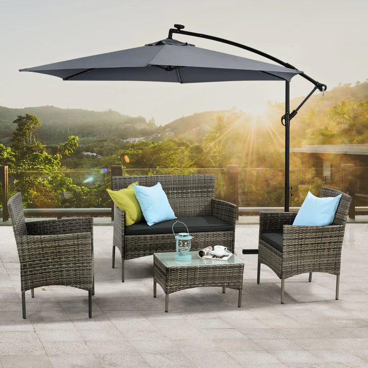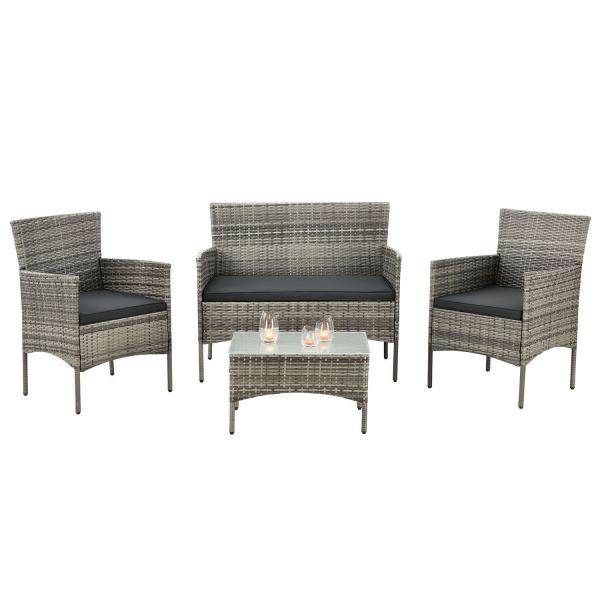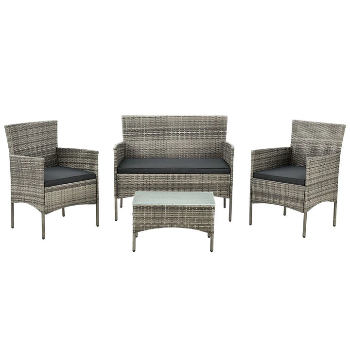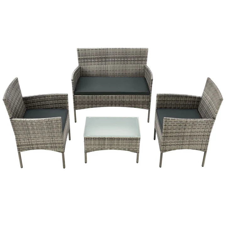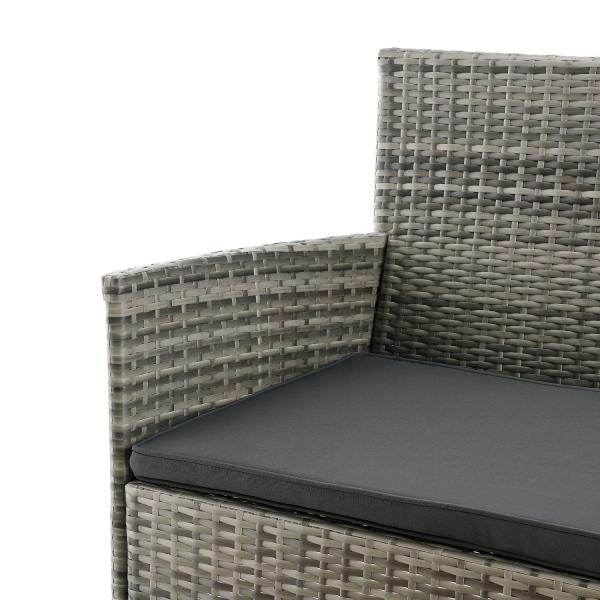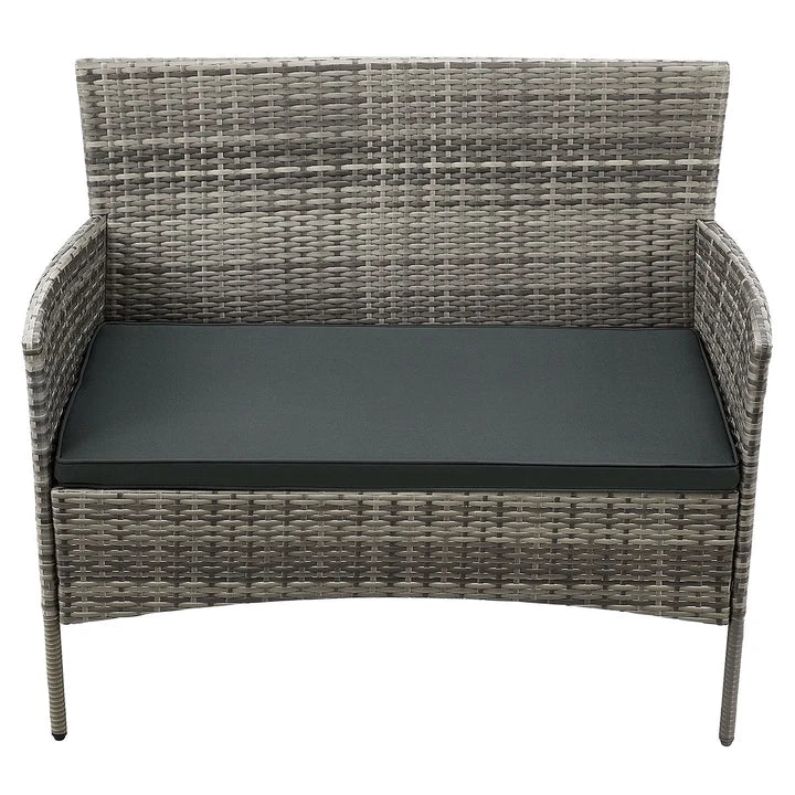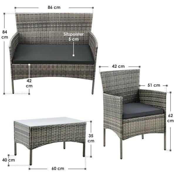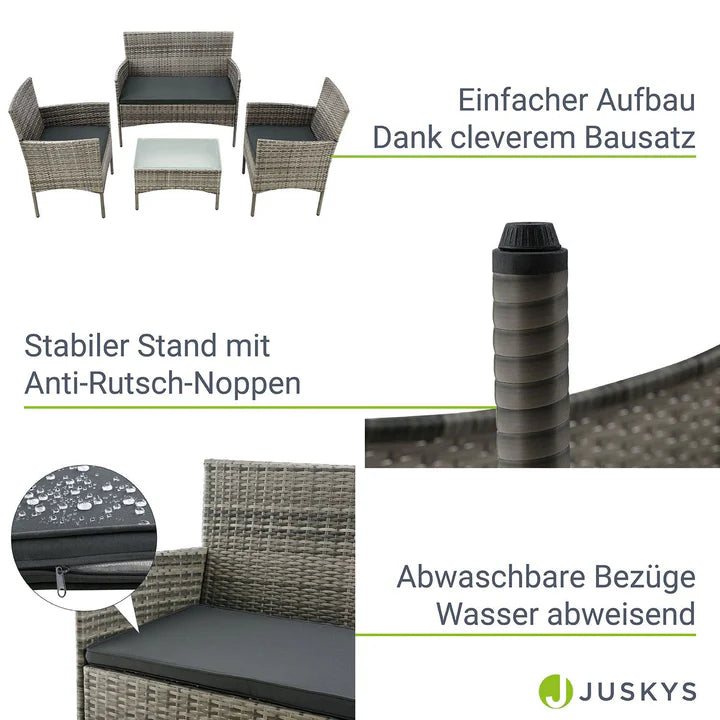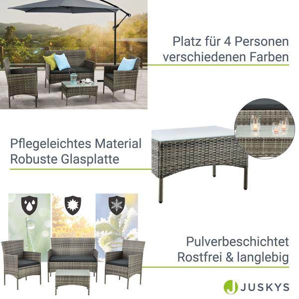 Ob Pärchenabend oder Kaffeetrinken mit der Familie, die Gartengarnitur bietet eine Sitzecke für eine kleine Runde mit 4 Personen. Die Garnitur zum Sitzen besteht aus 2 Stühlen und einem Sofa mit Arm- und Rückenlehne. Es ist besonders als Rattan Balkonmöbel geeignet, weil es platzsparend ist.
