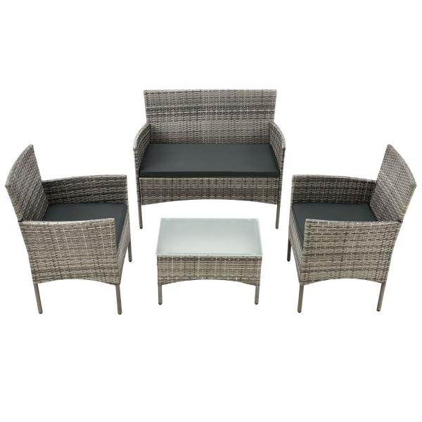 Polyrattan Sitzgruppe Fort Myers grau-meliert und dunkelgraue Bezüge