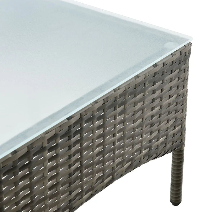 Ein 60 × 40 cm großer Tisch mit 5 mm starker Glasplatte ist ebenfalls im Set enthalten. Die robuste Glastischplatte bietet eine Stellfläche für Getränke und Snacks, damit Sie Ihre Gäste bestens versorgen. Auch Bücher, Zeitschriften oder Deko finden auf dem Glastisch einen Platz.