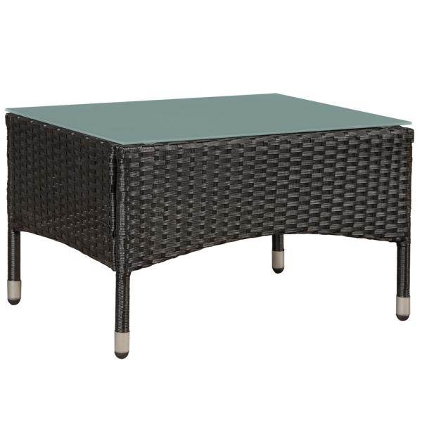 Ein 60 × 35 cm großer Tisch mit 5 mm starker Glasplatte ist ebenfalls im Set enthalten. Die robuste Glastischplatte bietet eine Stellfläche für Getränke und Snacks, damit Sie Ihre Gäste bestens versorgen. Auch Bücher, Zeitschriften oder Deko finden auf dem Glastisch einen Platz.
