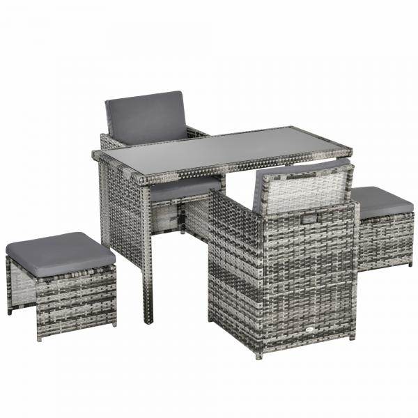 Polyrattan Sitzgruppe für 4 Personen Essgruppe Gartenset Garnitur mit Kissen, Grau