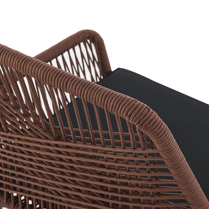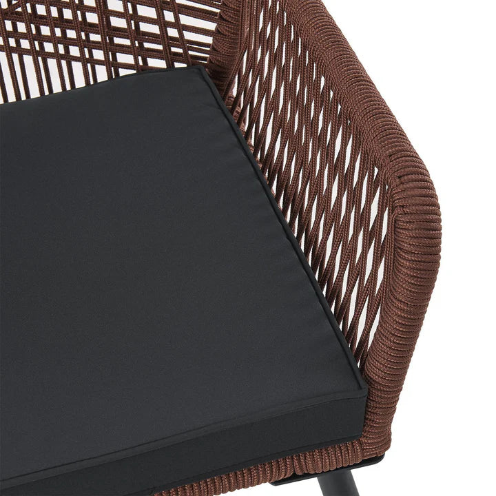 Ausgestattet mit einem trendigen Geflecht aus flachen, breiten Seilen werden die Stühle zu einem optischen Highlight auf jeder Terrasse, jedem Balkon oder im Wintergarten.