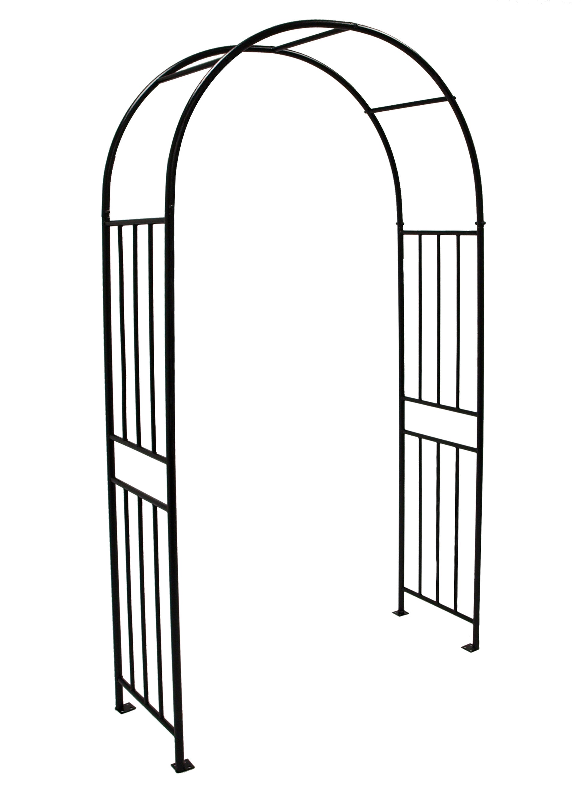 Stabiler Rosenbogen VERSAILLES, Maße 220x120cm. Oberfläche schwarz beschichtet in hochwertiger Hammerschlagoptik.