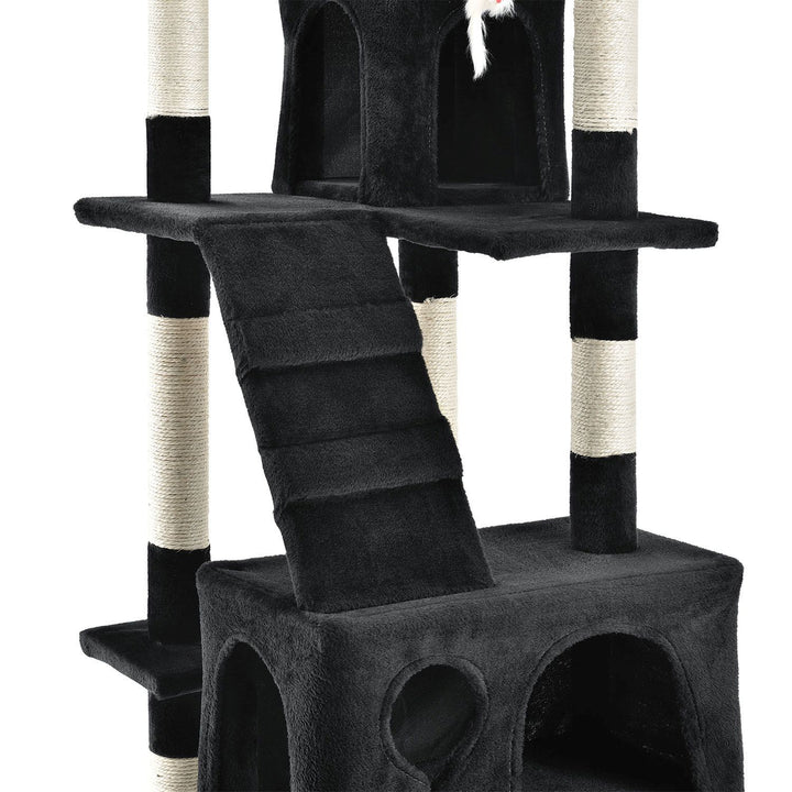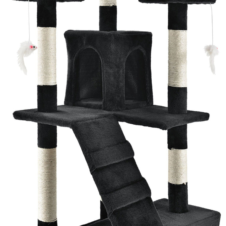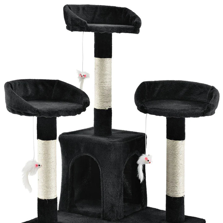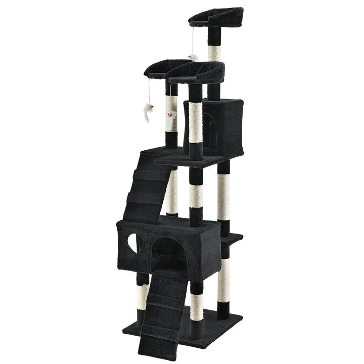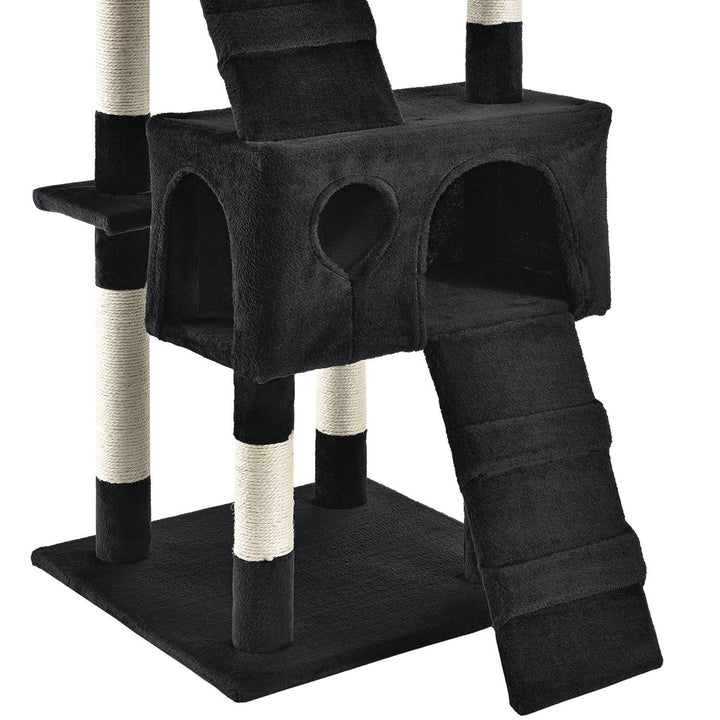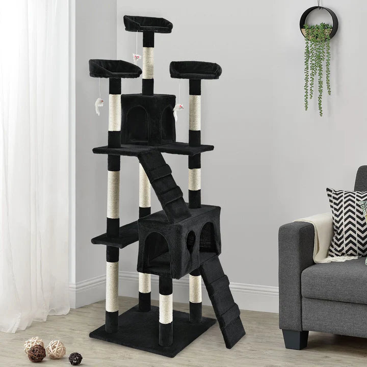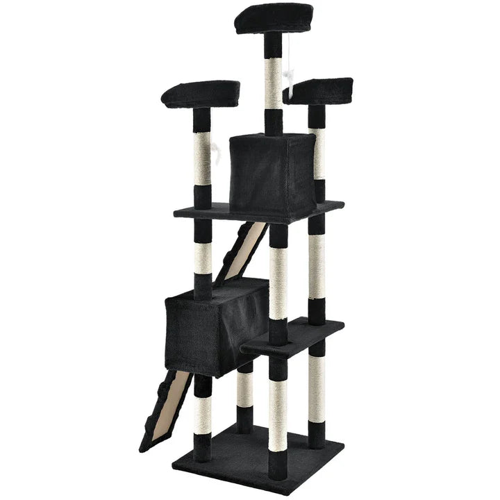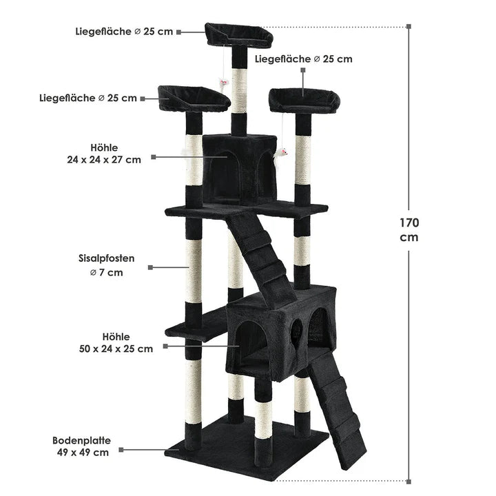 Der mittelhohe Kratzbaum Amy (Schwarz) lässt das Herz von Katzen höherschlagen. Er bietet Ihrem geliebten Haustier zahlreiche Möglichkeiten zum Spielen, Herumspringen, Ausruhen und Krallenschärfen. Ihre Katze wird sich rundum wohlfühlen und sich gerne auf dem Katzenbaum zurückziehen. Durch seine kompakte Bauweise nimmt das 170 cm hohe Kratzmöbel nur wenig Platz in Anspruch und findet selbst in kleinen Wohnungen seinen Platz. Somit ist dieser Katzenbaum eine lohnende Investition für jeden Katzenbesitzer.