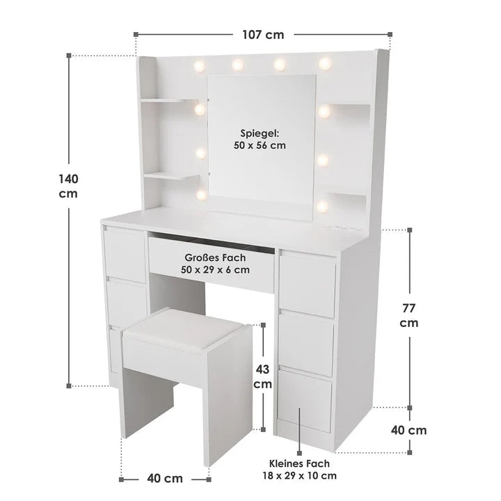 - Schminktisch (BxTxH): 107 x 40 x 140 cm