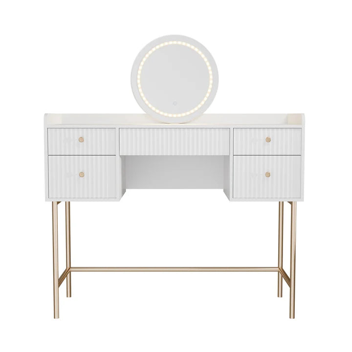 Mit 5 Schubladen bietet der Tisch reichlich Platz für Make-up, und Styling-Zubehör – alles ordentlich griffbereit.