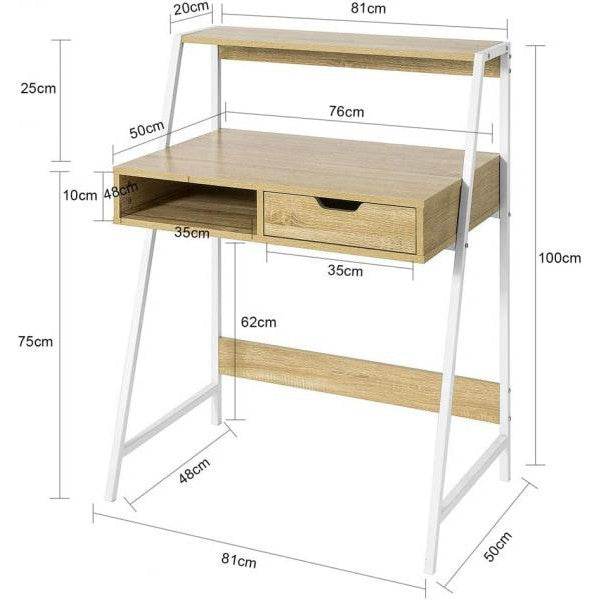 - Dieser Schreibtisch verfügt über eine Schublade und ein Fach. bietet ausreichend Stauraum. um Ihre Bücher. Stifte und andere Schreibwaren unterzubringen.