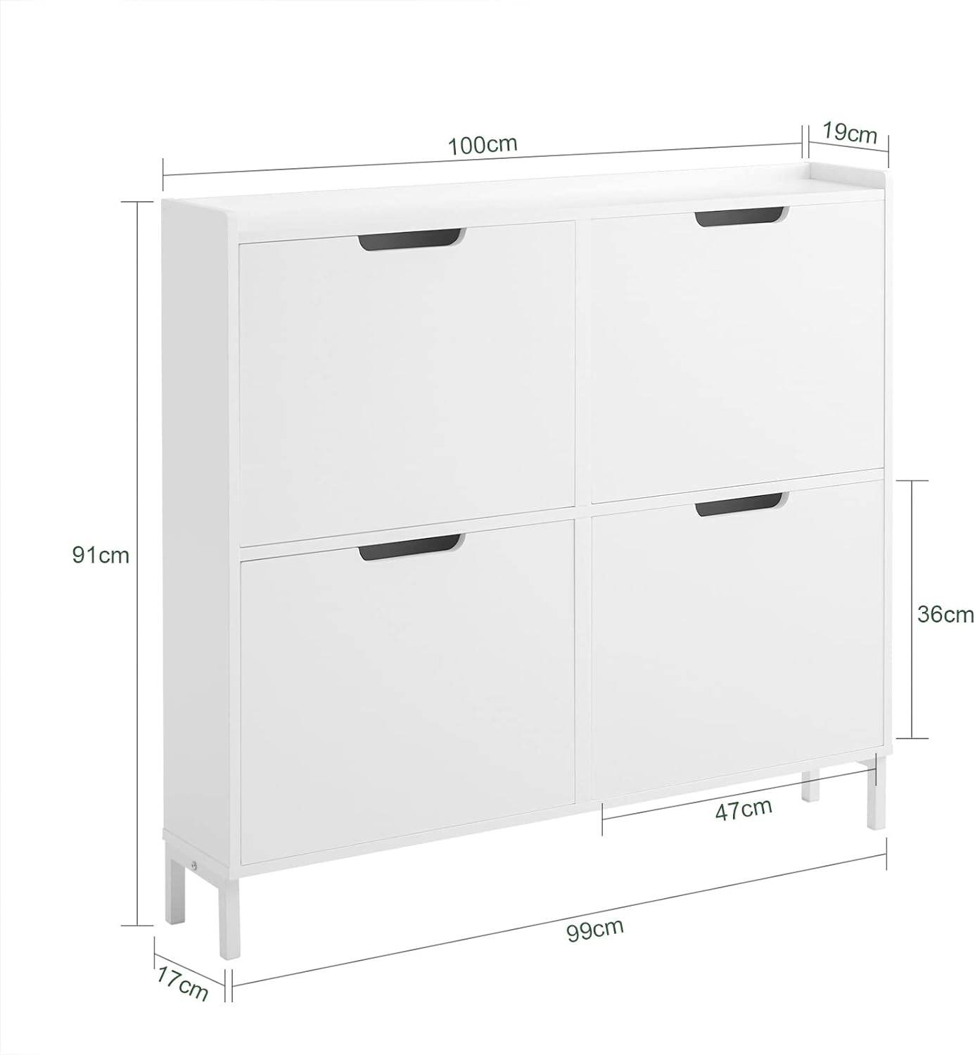 Schuhkipper | Schuhschrank mit 4 Klappen | Schuhkommode Weiss FSR100-W